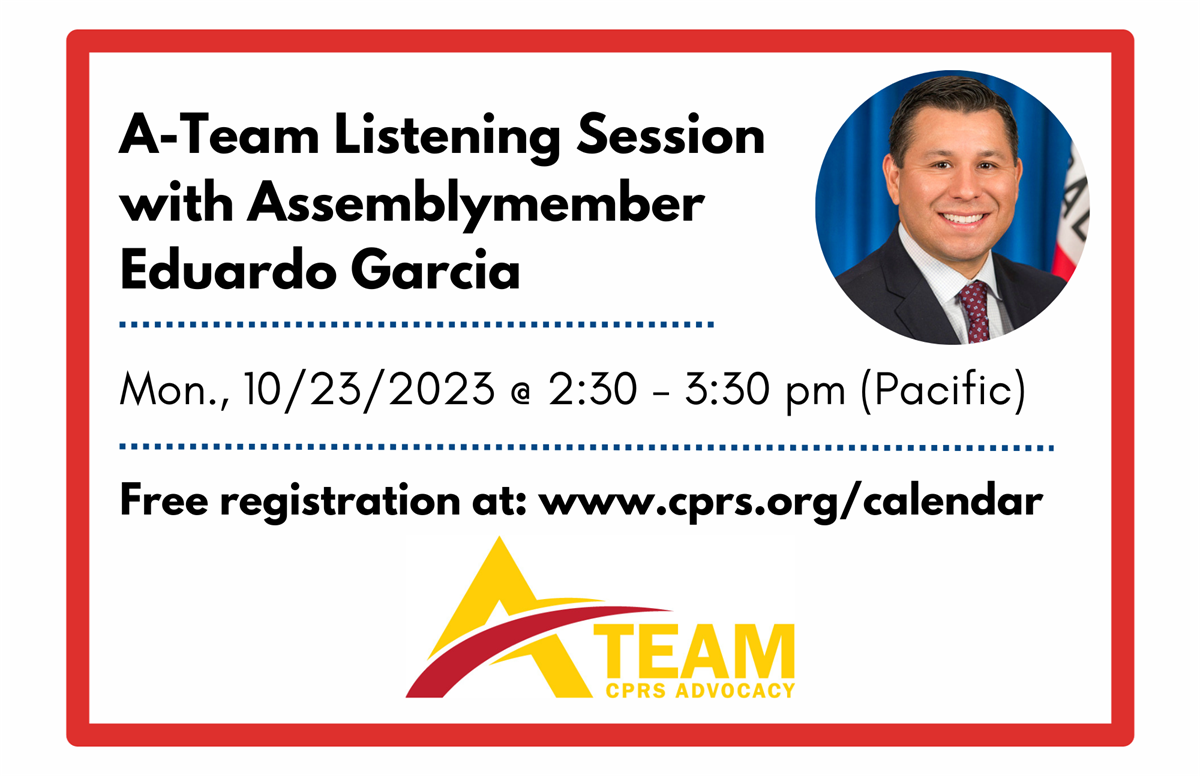 • 1.  10/23/2023 at 2:30 pm: A-Team Listening Session w/ Assemblymember Eduardo Garcia