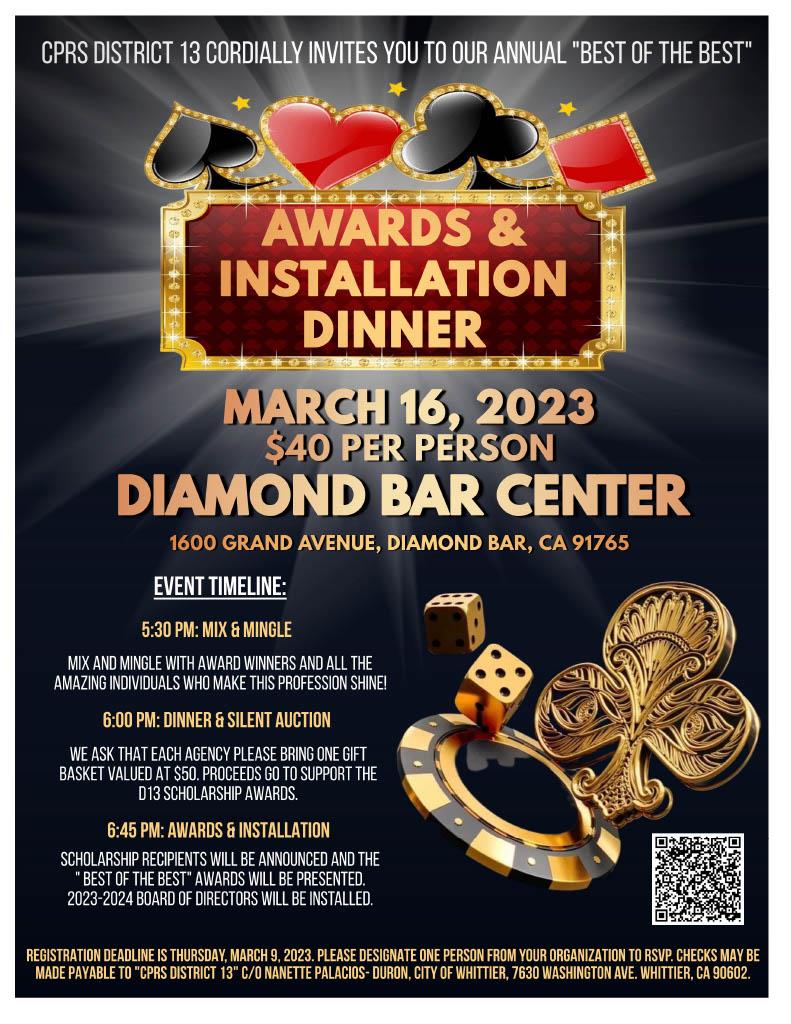 • 1.  Awards & Installation Dinner - March 16