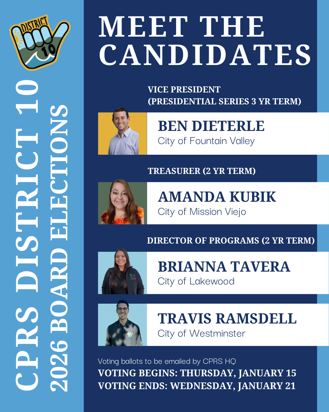 It's that time again D10! Meet the CPRS District 10 Board candidates for 2026-2027. Elections start this week.