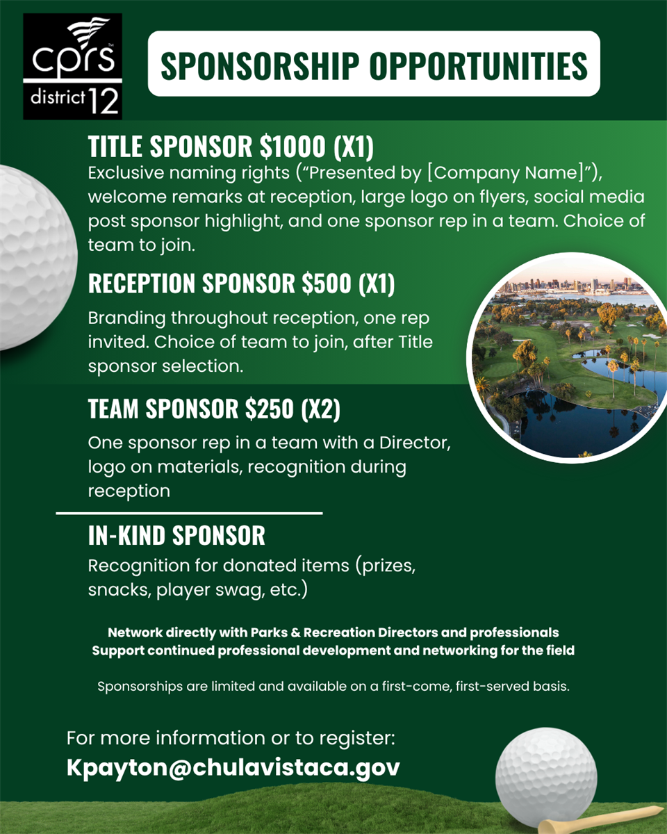 Space is limited! For more information or to register, contact Kevin Payton at kpayton@chulavistaca.gov.