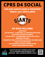 Join us July 29th for a CPRS D4 Social at the San Jose Giants Game VIP Deck! RSVP by July 14th to secure your tickets! An invoice will be sent to you for the payment. Payment must be completed by 7/19.
