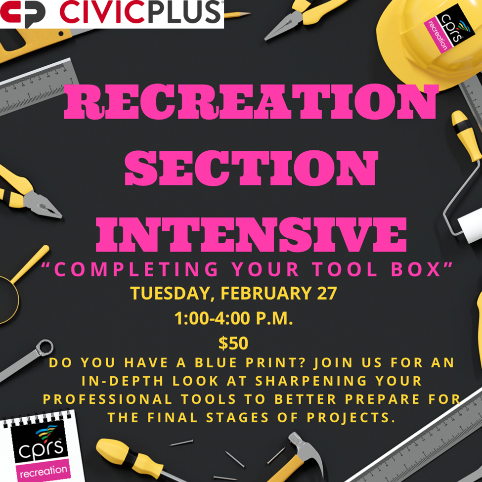 There is STILL time to register for an intensive in Palm Springs at the Connections Conference.  The Recreation Section is wrapping up and filling your tool box with final details on CIP projects, facility Grand Openings, and operational tips.  You sure don't want to miss this Intensive on Tuesday!