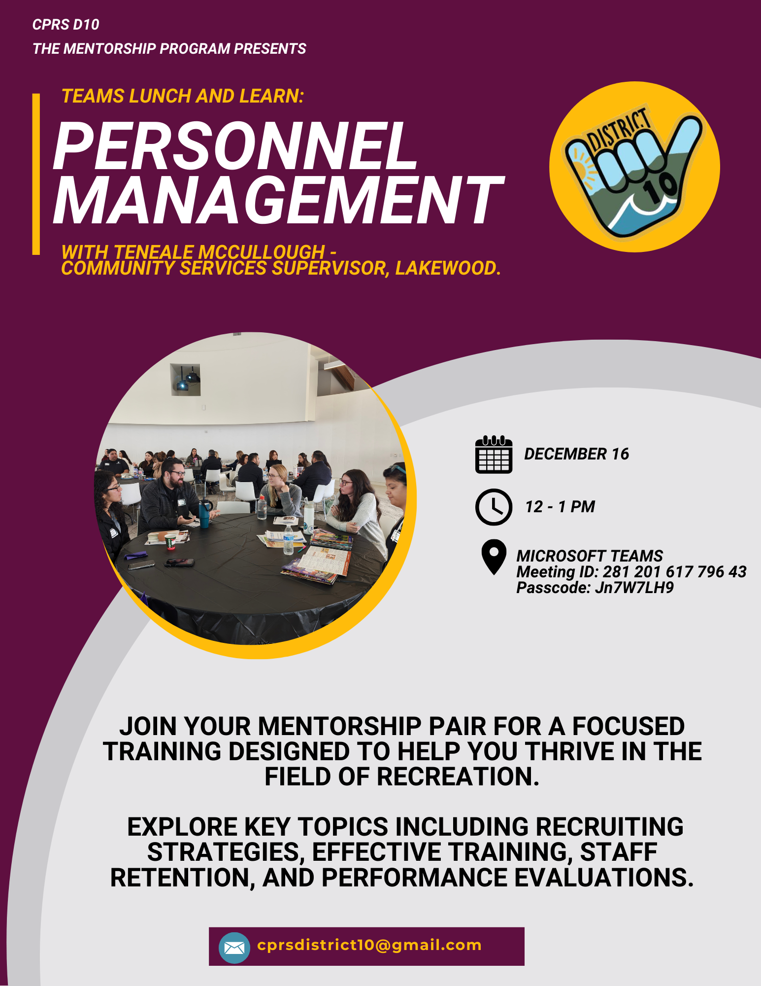 District 10 Mentorship Program Lunch & Learn #1