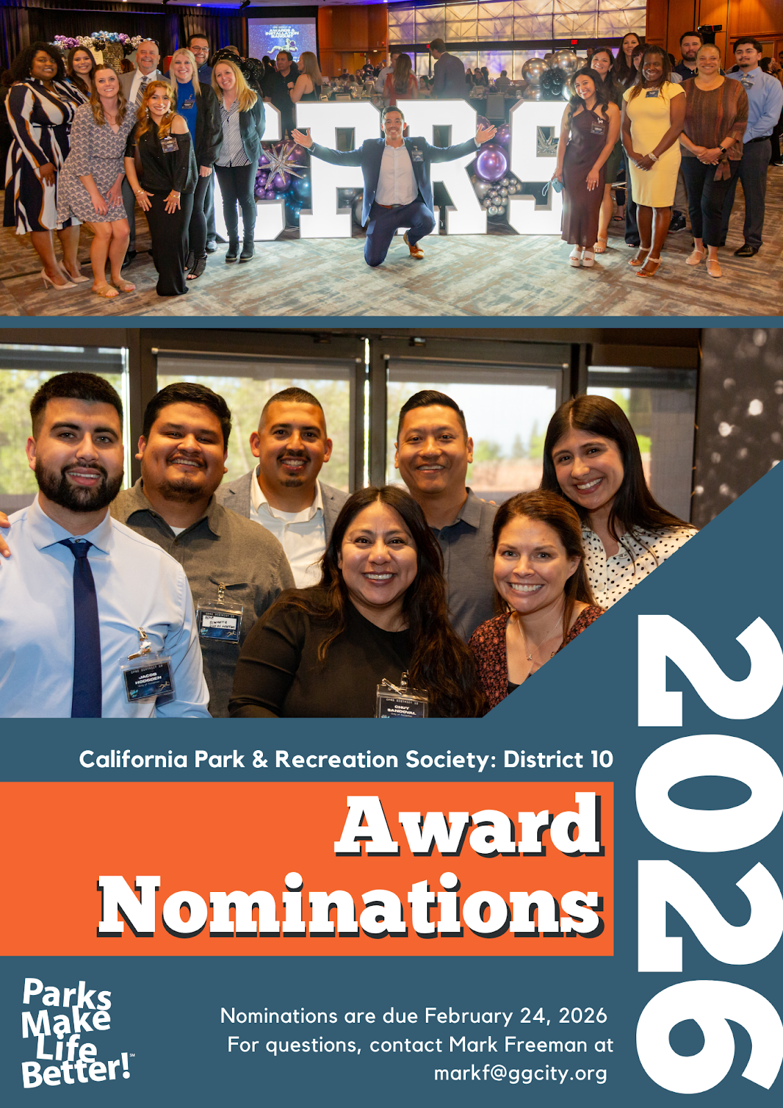 • This award will recognize a retiree within a member agency or organization who has made significant and lasting contributions to District 10, CPRS, and the Parks and Recreation profession.