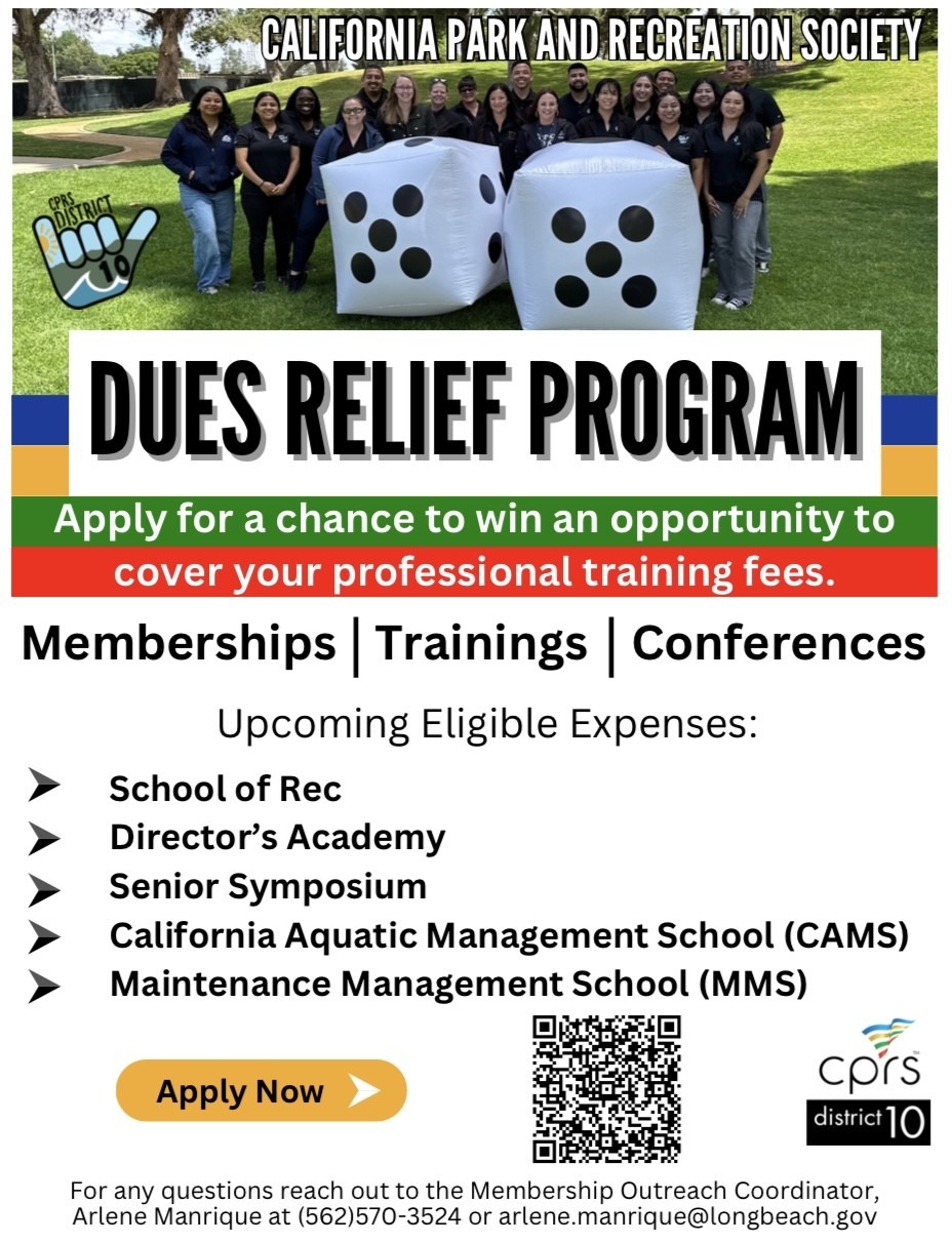 D10 provides Dues Relief to remove a financial barrier that would prevent members from attending events, trainings, and or renewing their membership.
