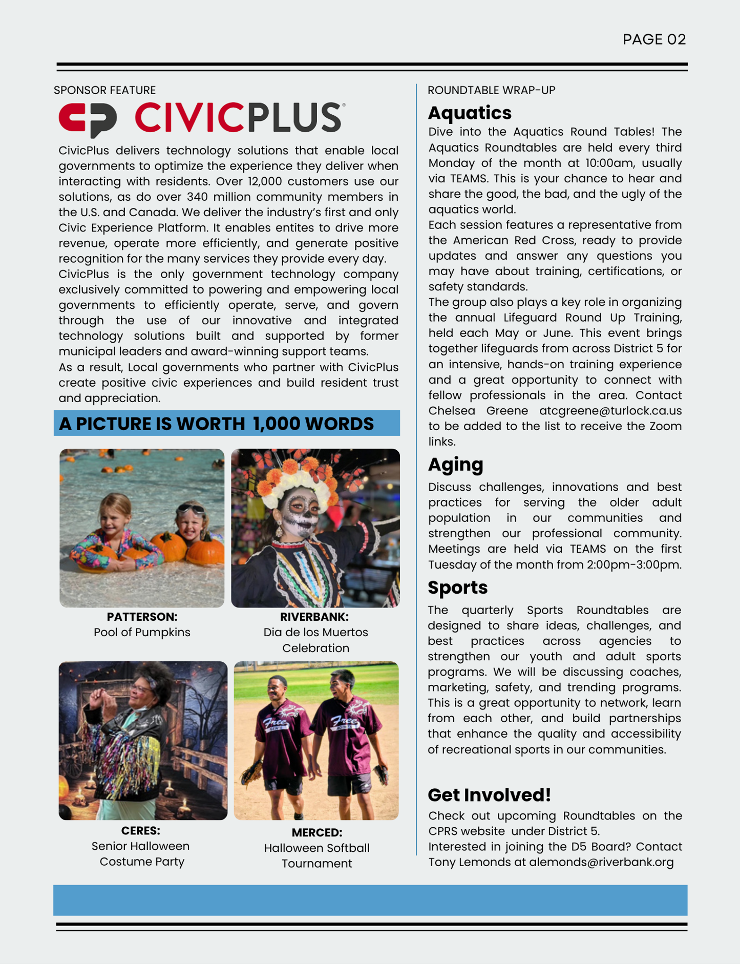 Get involved with CPRS to connect, grow, and make an impact in the parks and recreation profession.