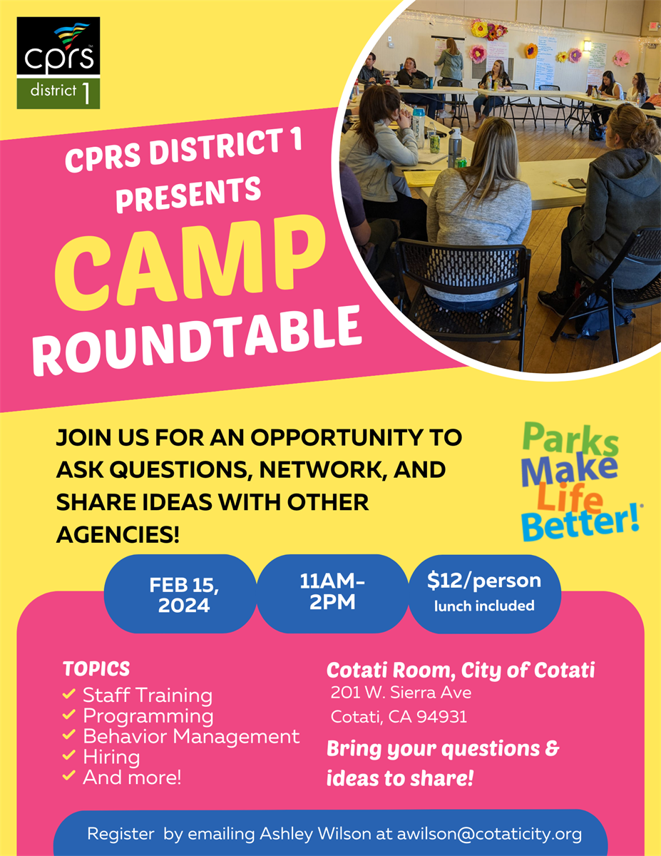 Join District 1 Board members for a Summer Camp Roundtable! You will have the opportunity to ask questions, network, and share ideas with other agencies!