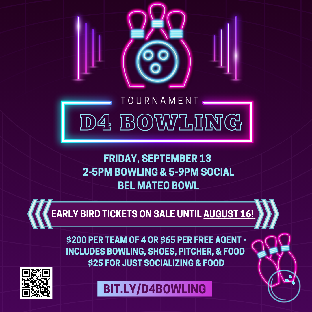 Early bird pricing for the D4 Bowling Tournament ends tomorrow, Friday, August 16! Don't miss out on securing the lowest rate-purchase your tickets HERE.