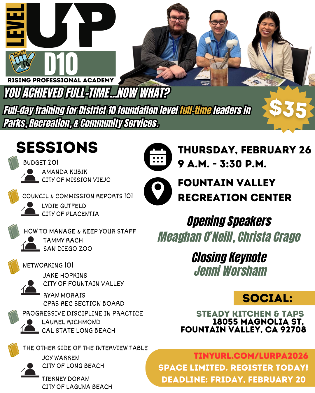 District 10 is excited to bring back a first-of-its-kind, full-day training created specifically for emerging full-time leaders in Parks, Recreation, & Community Services.