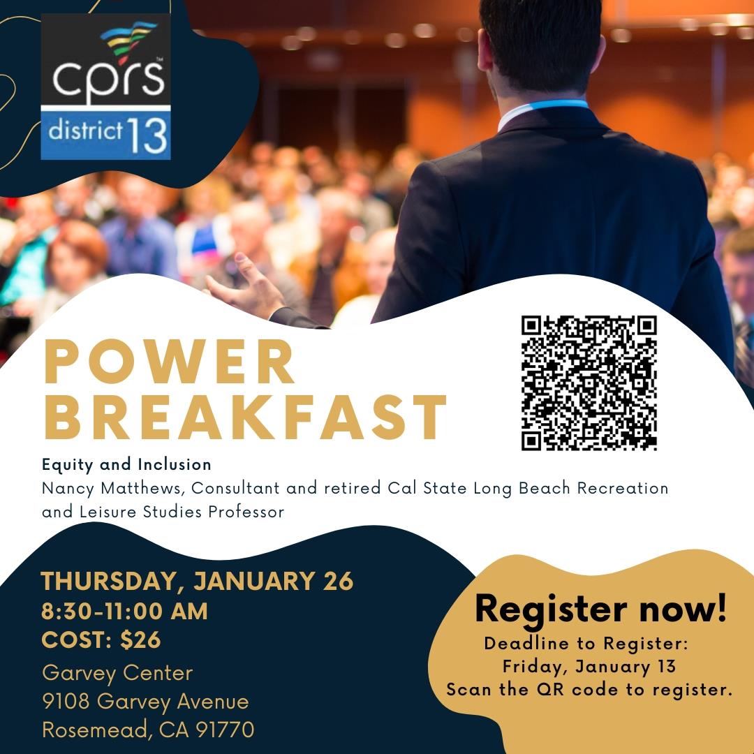 California Park and Recreation Society (CPRS) District 13 invites City Managers, Department Heads, Managers, and Supervisory staff to learn how park and recreation professionals are handling equity and inclusion within their organizations via a presentation by consultant and retired Cal State Long Beach Recreation and Leisure Studies Professor, Nancy Matthews.