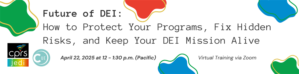 The CPRS JEDI Counsel is excited to partner with CircleUp Education to offer this live virtual training on Tuesday, April 22nd from noon – 1:30 PM (Pacific).  This training will be limited to live participation – it will not be recorded so don't miss out!  CPRS members can register for $25, and non-members are welcome for $35.