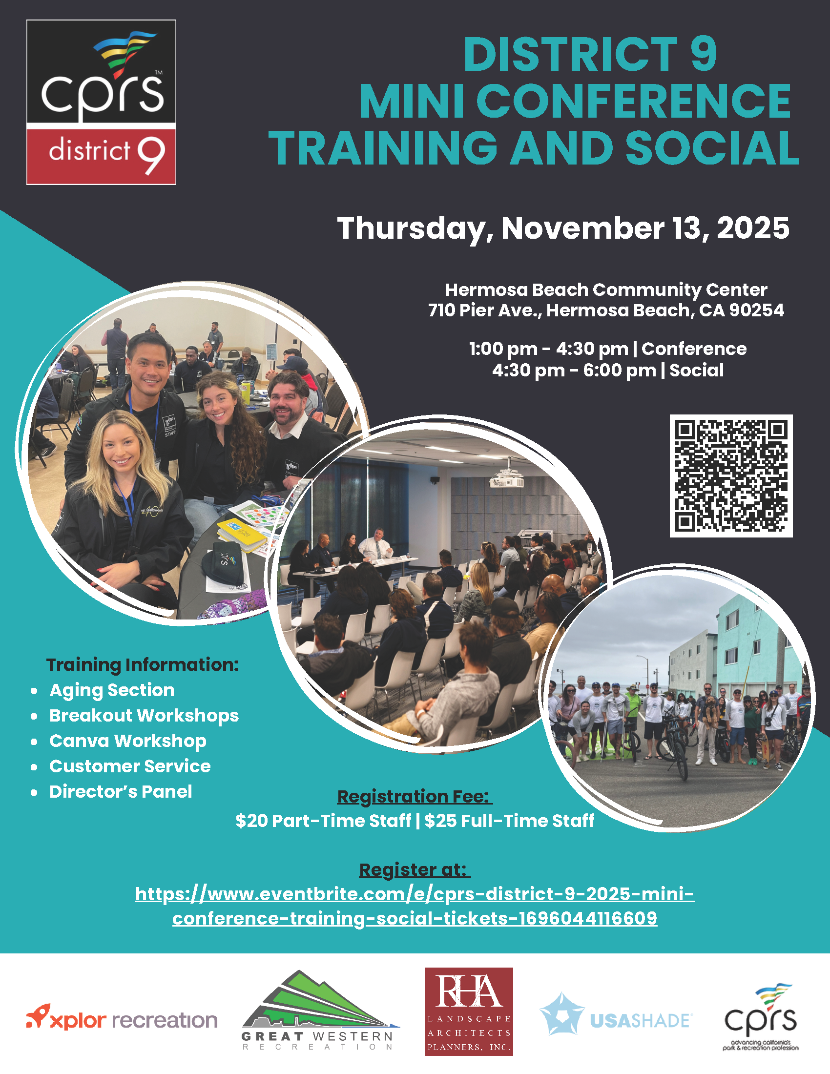 You are invited to join us for the CPRS District 9 Mini Conference: Training and Social on Thursday, November 13 in the City of Hermosa Beach. We’re excited to bring our D9 community together for an afternoon of learning and connection.